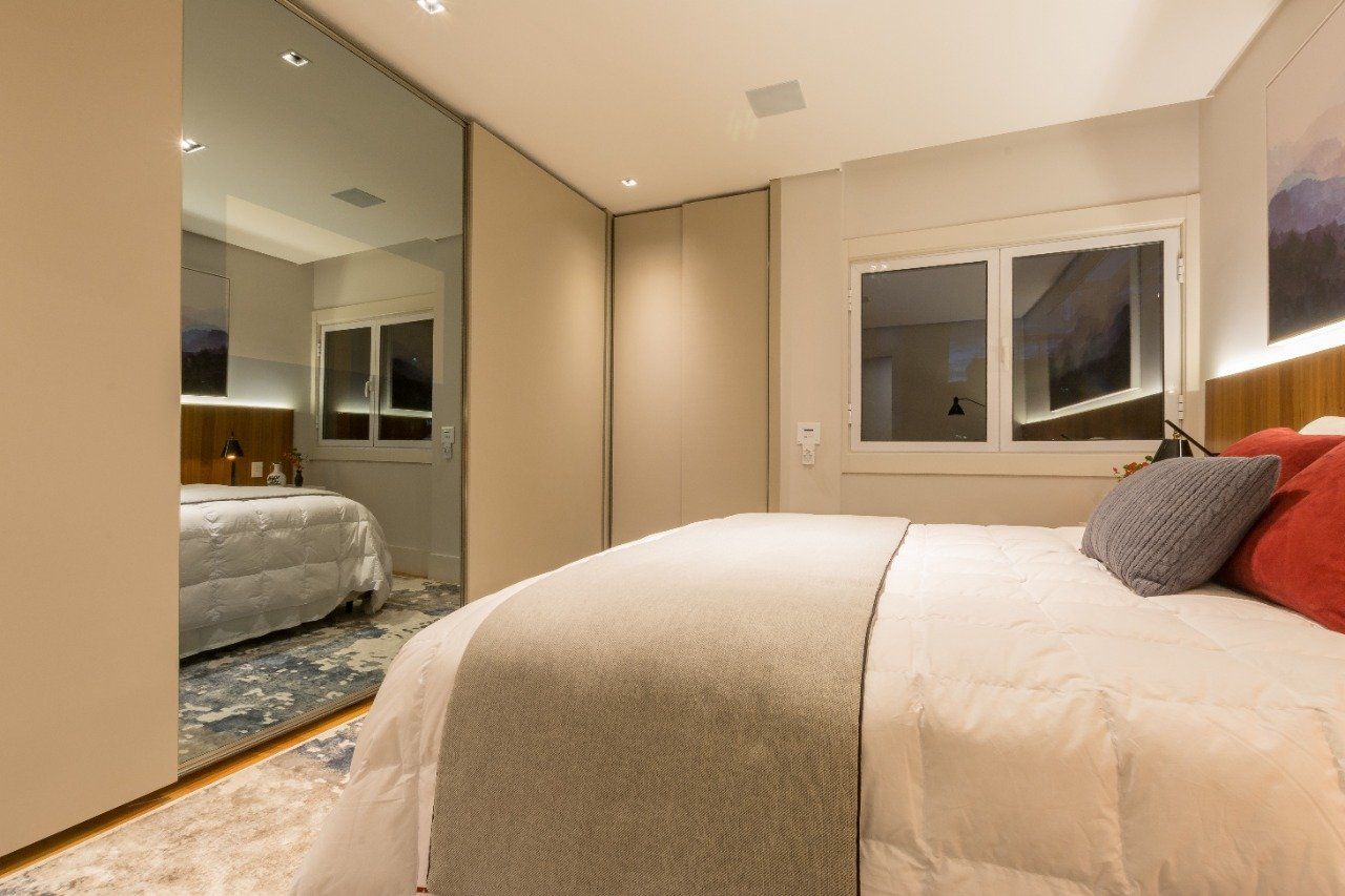 Considerado um dos lugares preferidos da casa, o quarto é o ambiente gostoso que temos para descansar, relaxar e recarregar as energias, por isso projetamos eles pensando num cômodo que transmita sossego, tranqüilidade e aconchego.